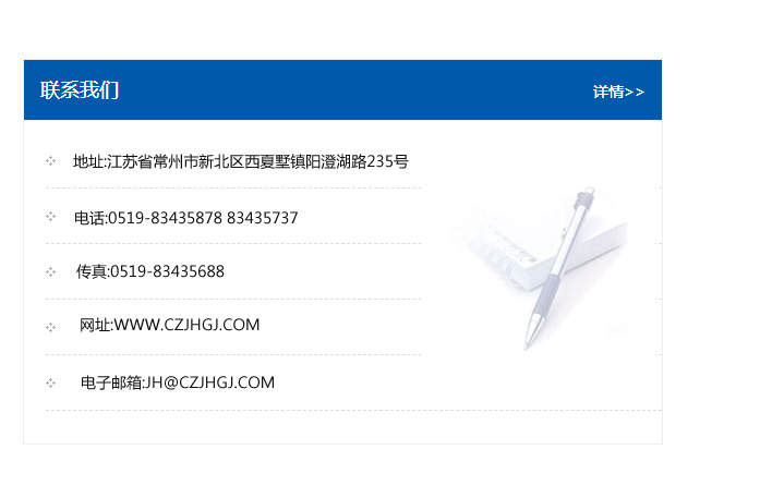 傳真:0519-83435688    郵編:213135    網址:WWW.czjhgj_com.jssutuo.com    電子郵箱:JH@czjhgj_com.jssutuo.com